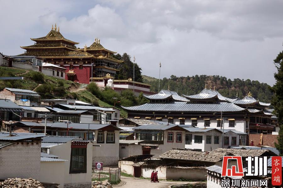 鎮(zhèn)內(nèi)的主要街道分屬兩省管轄。南北兩端,幾百米之內(nèi),有兩座壯觀宏大的寺院建筑群隔“江”(白龍江源流)相望,甘肅境內(nèi)是“賽赤寺”。四川境內(nèi)有“格爾底寺”。李仁奇攝