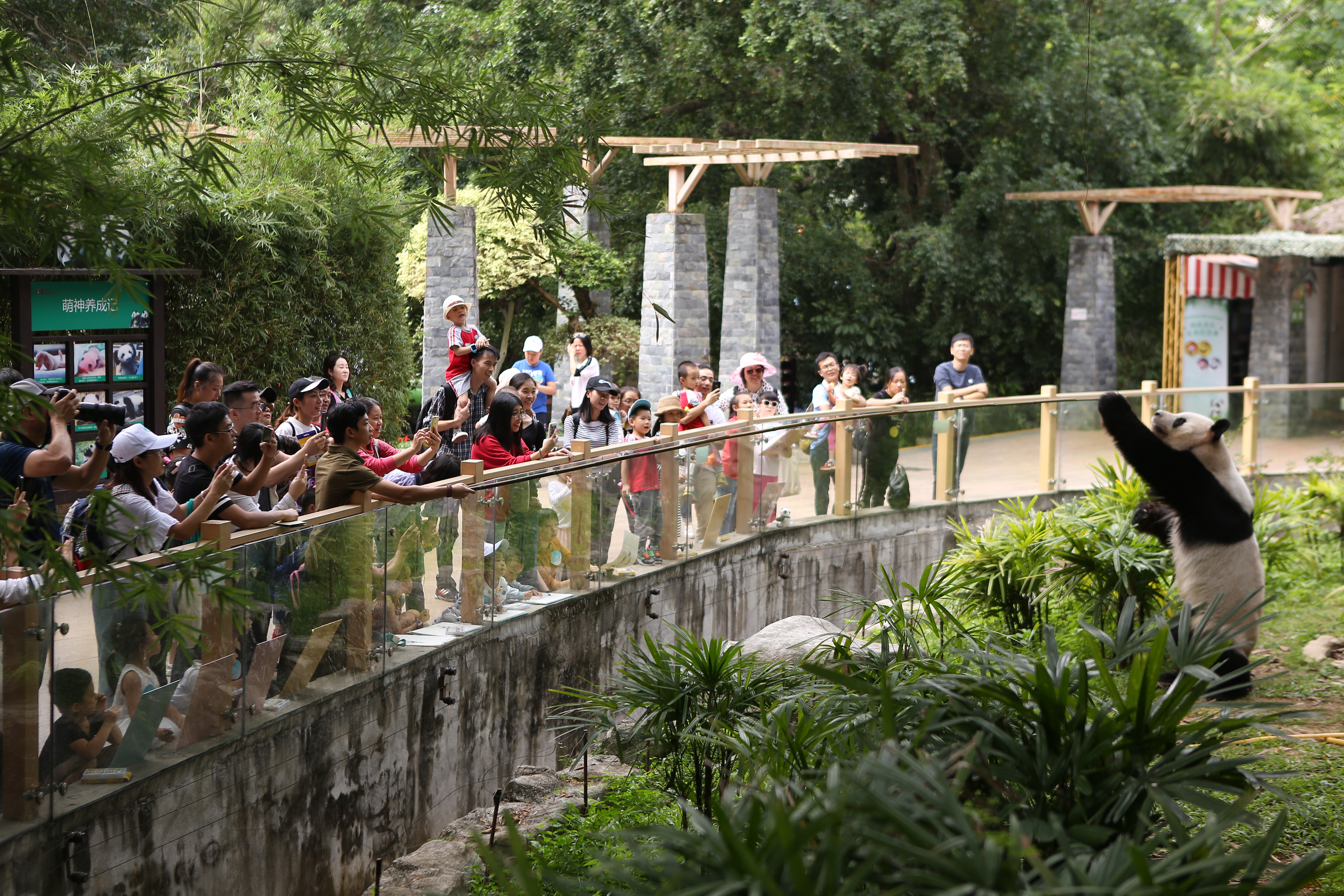 猿猴村的后面,是國寶大熊貓的家——熊貓莊園。小朋友們來到這里,瞬間被大熊貓圓滾滾的萌態(tài)所吸引。他們或坐或站,拿起畫板,完成了從“小飼養(yǎng)員”到“小畫家”的角色轉(zhuǎn)變。在認(rèn)真觀察大熊貓后,小朋友們揮動(dòng)手中的畫筆,將它們的萌態(tài)一一呈現(xiàn)在畫板上。