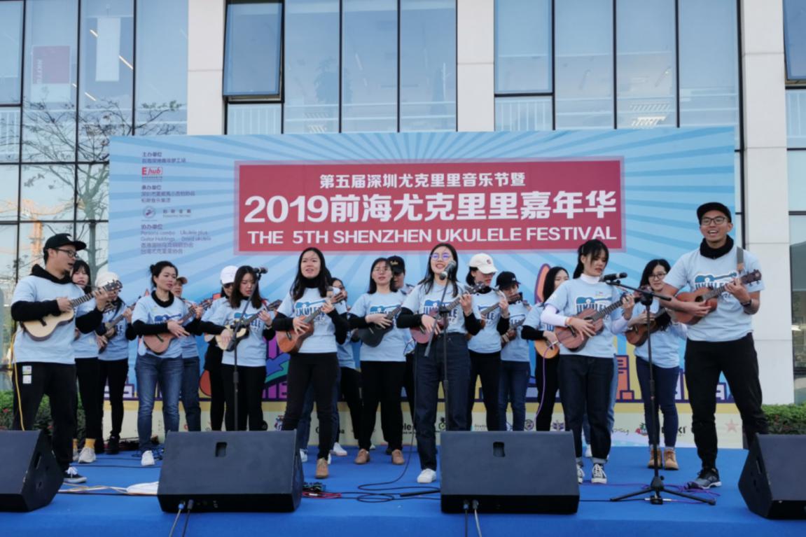 深圳第五屆尤克里里音樂(lè)節(jié)暨“前海尤克里里嘉年華”舞臺(tái)位于前海深港青年夢(mèng)工場(chǎng)夢(mèng)廣場(chǎng),共有100多名的深港尤克里里愛(ài)好者,學(xué)校社團(tuán),企業(yè)社團(tuán)為前海帶來(lái)了持續(xù)四個(gè)小時(shí)的尤克里里音樂(lè)盛宴。