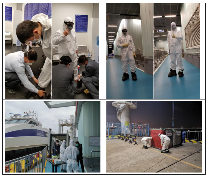 港口各級(jí)干部員工勇于擔(dān)當(dāng)、迎難而上,勠力同心、眾志成城,共同筑牢嚴(yán)防疫情輸入的堅(jiān)強(qiáng)防線,用實(shí)際行動(dòng)詮釋了“牢記使命勇?lián)?dāng)”。蛇口郵輪母港呂如福常務(wù)副總經(jīng)理與港口運(yùn)營中心林麗華總經(jīng)理連夜開會(huì)部署至深夜,第二天仍早早趕到現(xiàn)場與聯(lián)檢單位共同查勘旅客動(dòng)線;賴乙海總監(jiān)接到航班通知后,放棄值班休息第一時(shí)間趕到現(xiàn)場布置各項(xiàng)保障任務(wù),并親自為一線員工穿戴防護(hù)用品;港口一線員工面對(duì)夜間加開航班旅客人數(shù)多且有發(fā)燒旅客的情況,毫不退縮、沖鋒在前,順利完成保障任務(wù),一直到深夜客船和旅客動(dòng)線消毒清場完畢才下班。