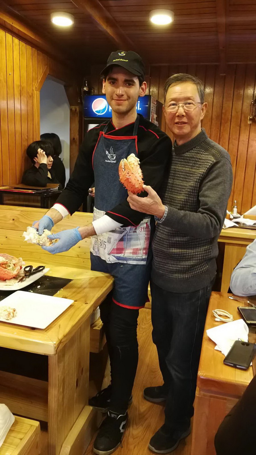 蜘蛛蟹(又名皇帝蟹)只產(chǎn)于南北兩極冰冷的海洋中,大個(gè)的重量可達(dá)5公斤以上。資深旅游者大多知道美國阿拉斯加的蜘蛛蟹是當(dāng)?shù)靥禺a(chǎn)美味,但很多人并不了解智利、阿根廷接近南極洲的海域有比阿拉斯加蜘蛛蟹更大、味道更好、價(jià)格更低的同類海產(chǎn)品。李仁奇攝