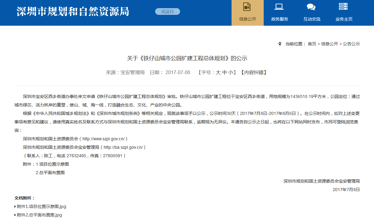 早在2017年,當(dāng)時的市規(guī)土委曾經(jīng)在官方網(wǎng)站發(fā)布了《關(guān)于<鐵仔山城市公園擴(kuò)建工程總體規(guī)劃>的公示》:深圳市寶安區(qū)西鄉(xiāng)街道辦事處來文申請《鐵仔山城市公園擴(kuò)建工程總體規(guī)劃》審批。鐵仔山城市公園擴(kuò)建工程位于寶安區(qū)西鄉(xiāng)街道,用地規(guī)模為1436510.19平方米,公園定位:通過城市綠芯、活力林岸的重塑,使山、城、海一線,打造融合生態(tài)、文化、產(chǎn)業(yè)的中央公園。