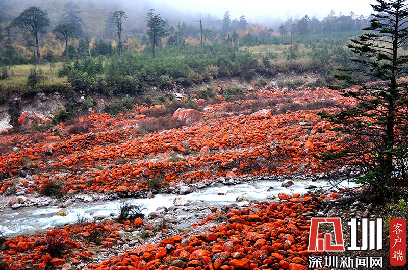 川西高原有一道特殊的美景—紅石灘,它們集中或零星分布在海拔3000米上下的森林河谷地帶,或被綠樹藍天映襯,或與云霧水氣為伴,令人賞心悅目。