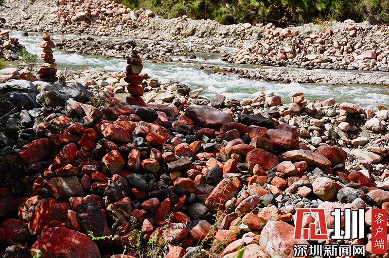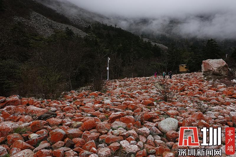 紅石對生長環(huán)境的要求極為苛刻,空氣潔凈度、濕度、水的清潔度都會影響它們的生長。雅家梗一代低碳富氧的空氣、冰山融雪的溪流、森林茂密的植被,為紅石的生長繁衍提供了最理想的環(huán)境。在這里,紅石密布于近百米寬的河谷里,不同的季節(jié),不同的天氣狀況下,幻化出不同的色彩,呈現(xiàn)朝紅夕褚的奇異景觀。