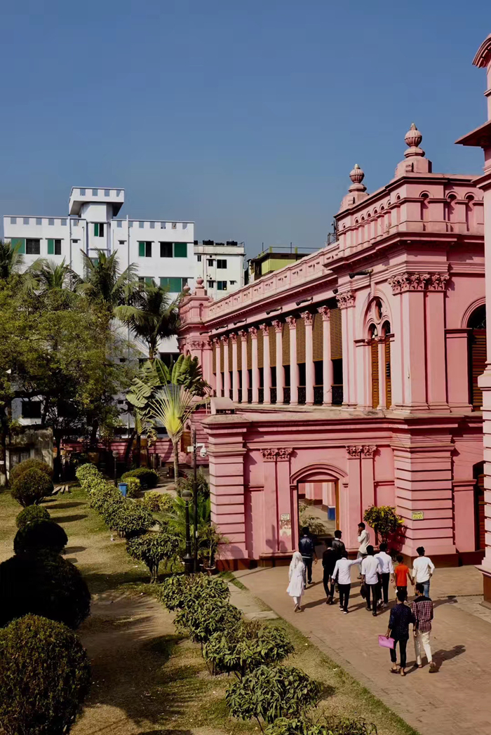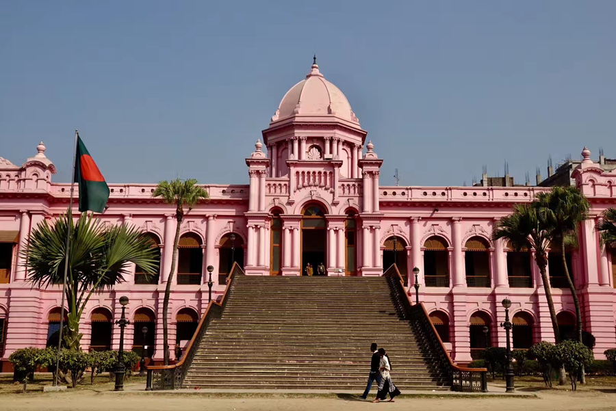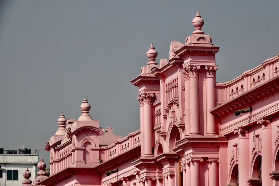 距孟加拉恒河渡口不遠的地方有一座粉紅色宮殿式的豪華建筑。那是1872年一位名叫阿赫桑曼濟勒的地主在法國人留下的倉房基礎(chǔ)上改建的私邸,后來曾在一次龍卷風襲擊時受創(chuàng)。李仁奇 攝