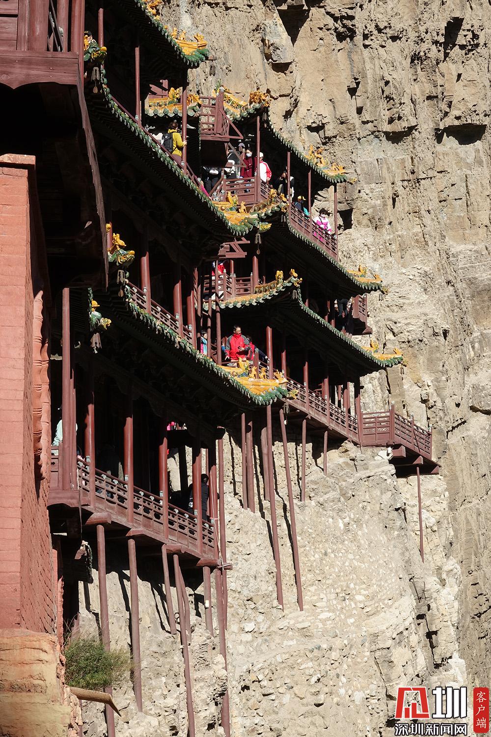 上個(gè)世紀(jì)的90年代,山西文物部門的專家去懸空寺進(jìn)行了修繕,其目的是為了更好地保護(hù)這座懸空寺。李仁奇攝。