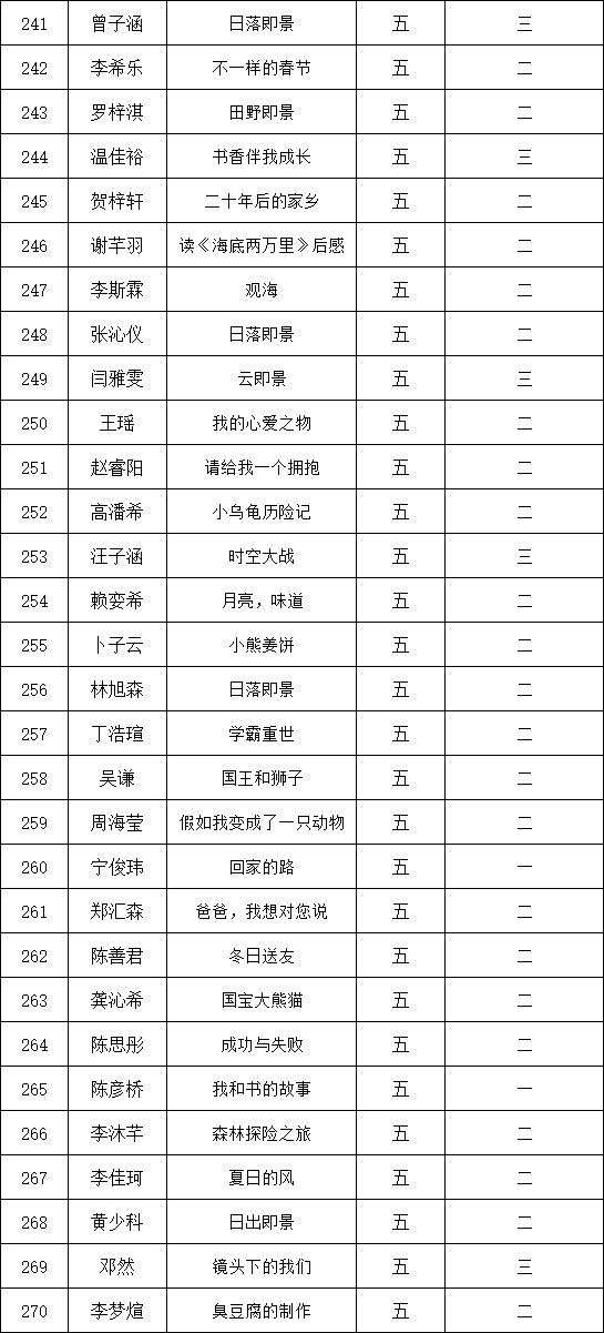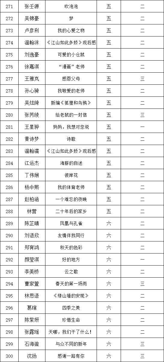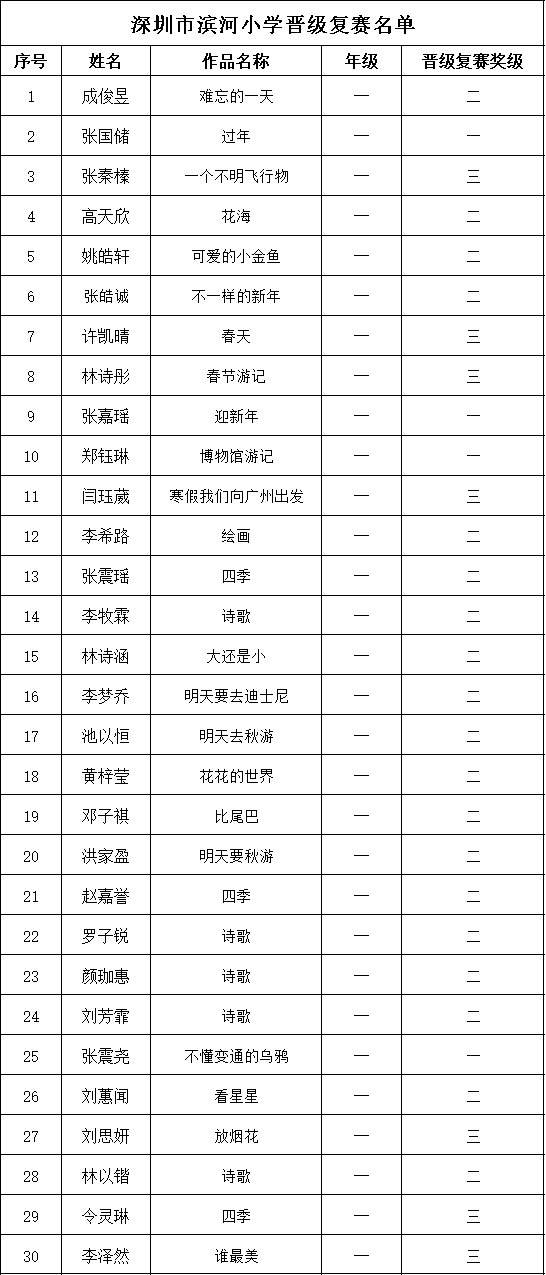 自2021年1月,活動(dòng)征稿啟動(dòng)以來(lái),獲得了深圳市廣大中小學(xué)生、教師、文學(xué)愛好者的熱烈響應(yīng)積極參與,吸引了深圳百余所學(xué)校的上萬(wàn)人關(guān)注報(bào)名。現(xiàn)公布深圳市濱河小學(xué)校園專場(chǎng)晉級(jí)復(fù)賽名單如下: