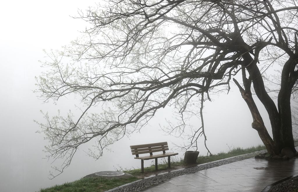 瀑布云在山頂形成,平鋪開來,順著山崖緩緩流下,延綿不絕。李仁奇 攝