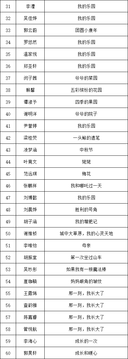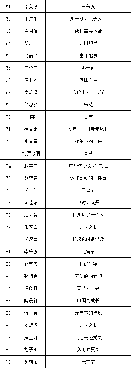 自2021年1月,活動征稿啟動以來,獲得了深圳市廣大中小學(xué)生、教師、文學(xué)愛好者的熱烈響應(yīng)積極參與,吸引了深圳百余所學(xué)校的上萬人關(guān)注報名。現(xiàn)公布龍華區(qū)玉龍學(xué)校專場晉級復(fù)賽名單如下:
