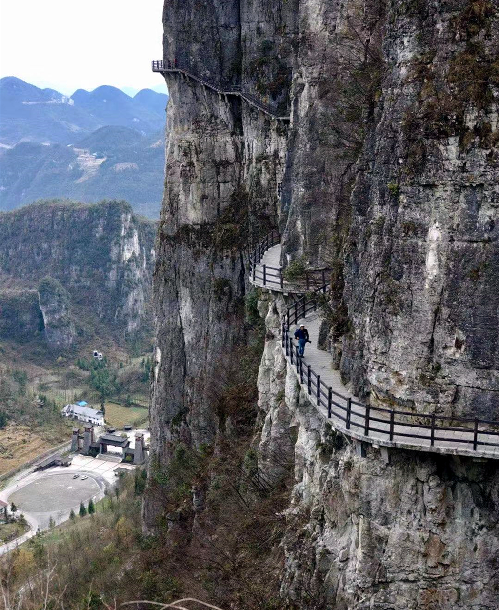 棧道橫掛在海拔約1700米、凈高約300米的絕壁間,往下看異常驚險,往上看則嘆為觀止。李仁奇 攝
