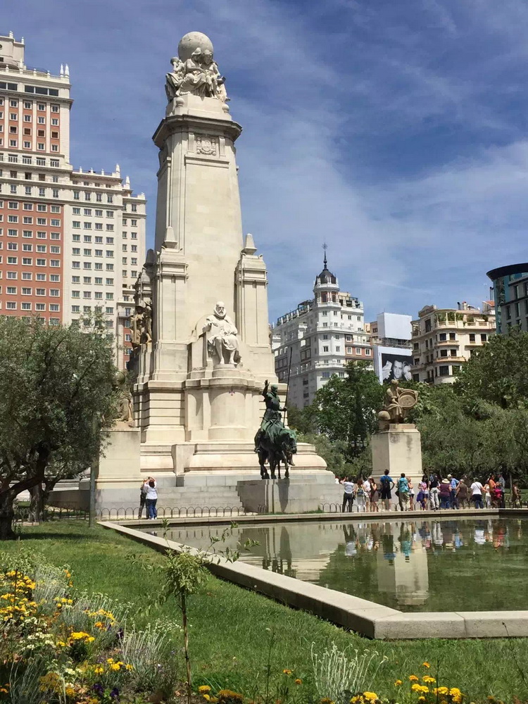馬德里是一個藝術(shù)之都,文藝復興時期西班牙最偉大的作家塞萬提斯及其小說人物堂吉柯德和仆人桑丘的塑像位于市區(qū)中心,是世界各國游客的打卡之地。李仁奇 攝