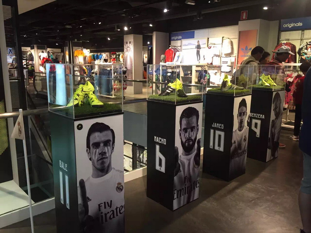 阿迪達(dá)斯公司與皇馬俱樂(lè)部合辦的紀(jì)念品商店生意興隆。李仁奇 攝