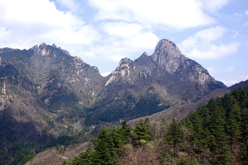 由于其隆起幅度自核心部位向周圍逐漸減小,外圍山地由硬度較花崗巖小的花崗閃長(zhǎng)巖和沉積巖組成,易被沖刷蝕低,故整個(gè)九華山體由眾多千姿百態(tài)、高低參差的中山、低山、丘陵和山間盆地等組成。李仁奇 攝