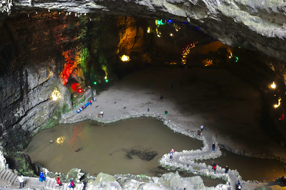 目前已探測長度為10.5公里,上下共分四層。洞廳多呈長廊狀和大廳狀。李仁奇 攝