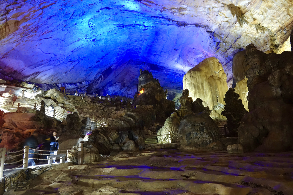長達6公里的游覽線路沿途,有十幾個空間壯闊的“大廳”,奇形怪狀、體量巨大的鐘乳石令人目不暇接。李仁奇 攝