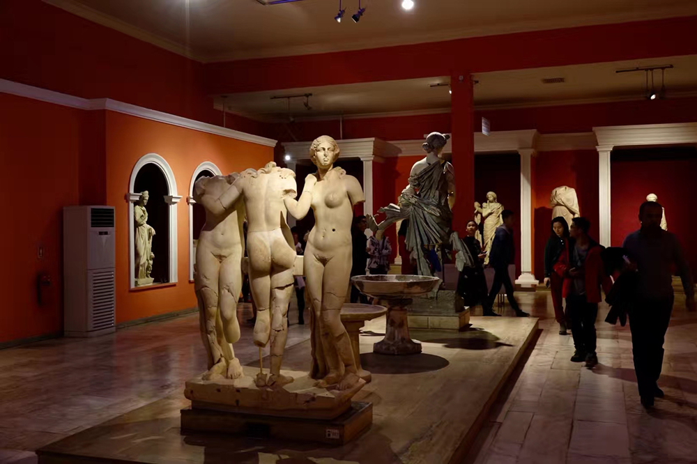 大量公元2—3世紀(jì)的人體雕塑令人目不暇接,這個時期也是該地區(qū)歷史發(fā)展中最為繁盛的階段。館內(nèi)陳列著眾多古希臘古羅馬眾神的雕像,號稱“萬神殿”。這些雕像是從公元8世紀(jì)的古墓里面發(fā)掘出來的,包括眾神之神宙斯、天后赫拉、智慧女神雅典娜、愛情與美麗女神阿芙羅狄忒、太陽神阿波羅、大力神赫拉克勒斯等。李仁奇 攝