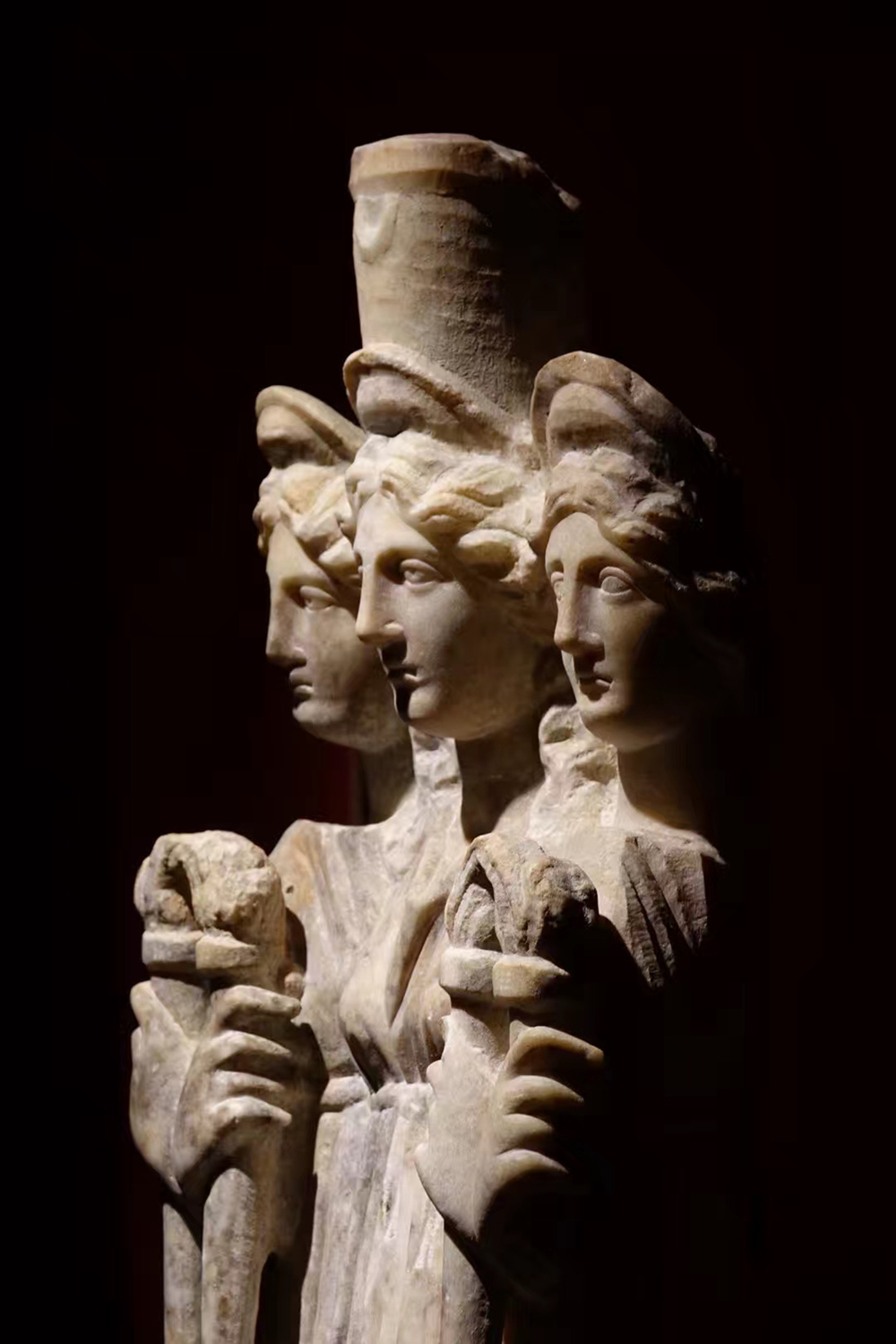 赫卡忒,希臘神話中一位善惡兼?zhèn)涞呐?。在雕塑中有三頭三身六臂,分別向著三個(gè)不同的方向,代表了她作為三岔路口守護(hù)者的角色。李仁奇 攝
