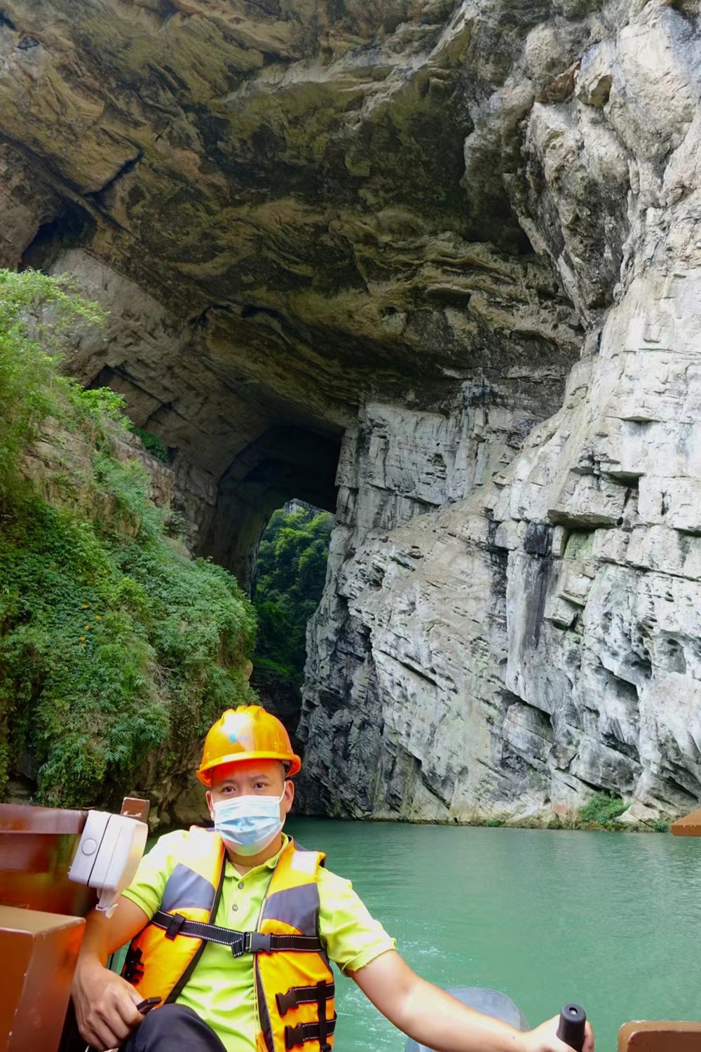 “暗河”指的是這條河流穿行溶洞的部分。里面漆黑一片,伸手不見五指,但中段有“蒼天有眼”(實為天生橋)奇觀,末端有形似“天下第一刀”的天空,令人稱奇。李仁奇 攝