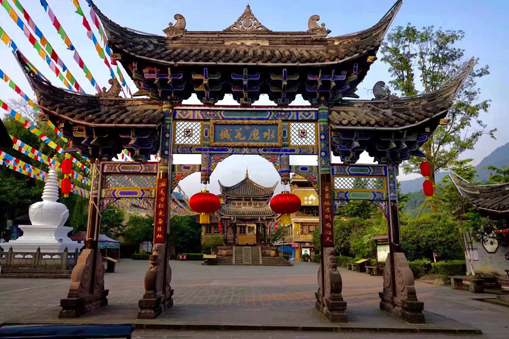 5.12大地震以后由廣東省援助,這里全新規(guī)劃建設(shè)了國家5A級風景區(qū),古代阿壩州南部藏漢雜居地區(qū)的鄉(xiāng)鎮(zhèn)風貌和民俗風情得以再現(xiàn),水磨古鎮(zhèn)由此成為四川和重慶兩省市居民近便的休閑度假勝地。李仁奇 攝