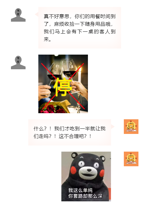 經(jīng)商家提前告知的限時就餐規(guī)定,且消費(fèi)者仍愿意消費(fèi)的行為于商家與消費(fèi)者雙方意思自洽,且協(xié)商一致的情形,雙方應(yīng)遵守。如商家未提前告知消費(fèi)者限時就餐的規(guī)定,則涉嫌侵害消費(fèi)者的知情權(quán)、公平交易權(quán)。(消費(fèi)提示:特殊節(jié)日里,外出就餐的消費(fèi)者較多,消費(fèi)者可以提前咨詢商家了解,是否有限時就餐的規(guī)定,并根據(jù)具體情況選擇餐廳,如遭遇侵權(quán)行為,應(yīng)保留相關(guān)證據(jù)材料,以便維權(quán)。)