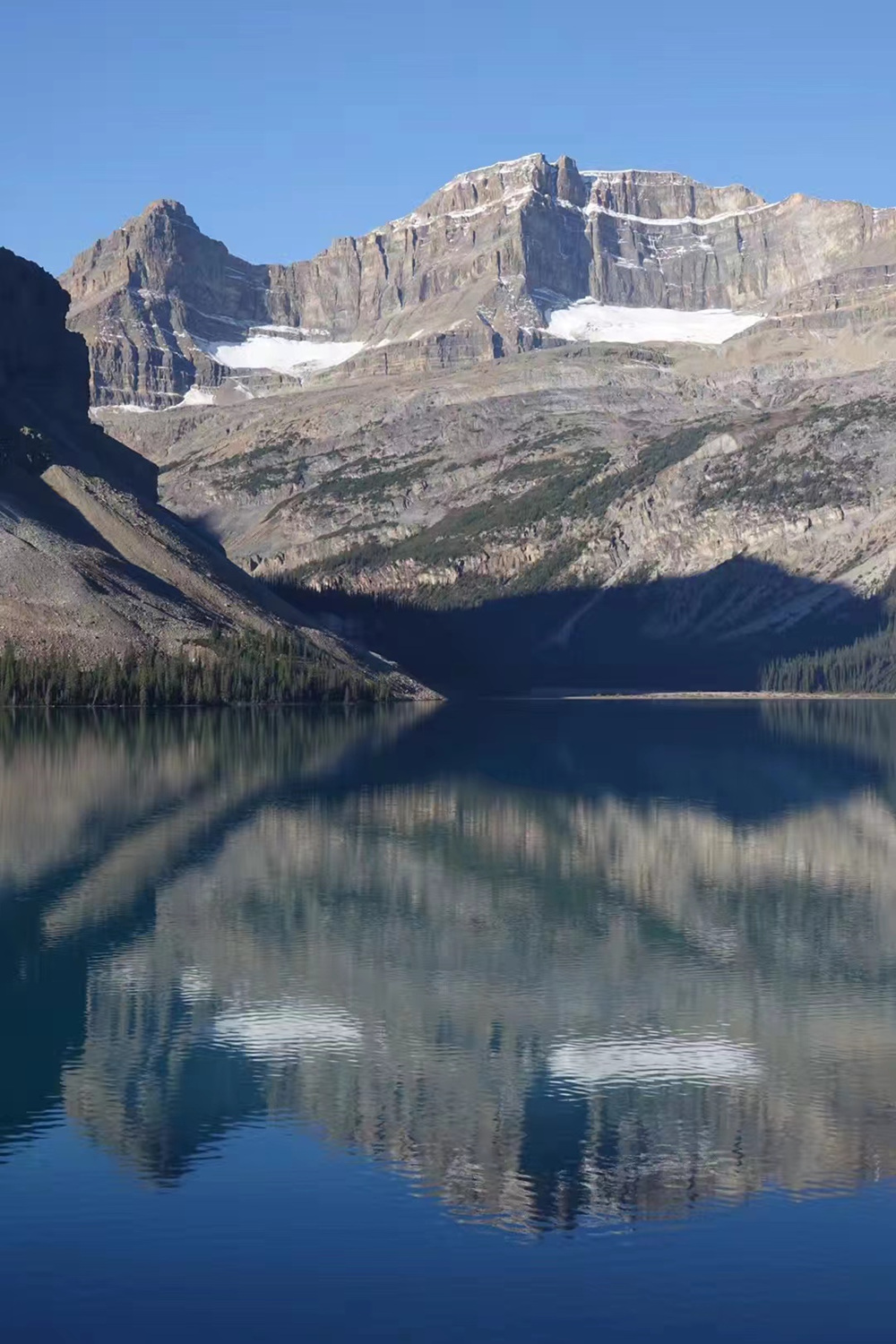 翠藍(lán)色的湖面倒映著周圍的碧空雪峰,極具誘惑力。李仁奇 攝