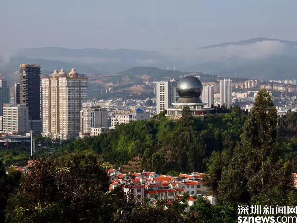 市內(nèi)的明珠廣場,巨大的球體就是高原明珠,在這里可以看到大半個城區(qū)的風(fēng)景。李仁奇 攝