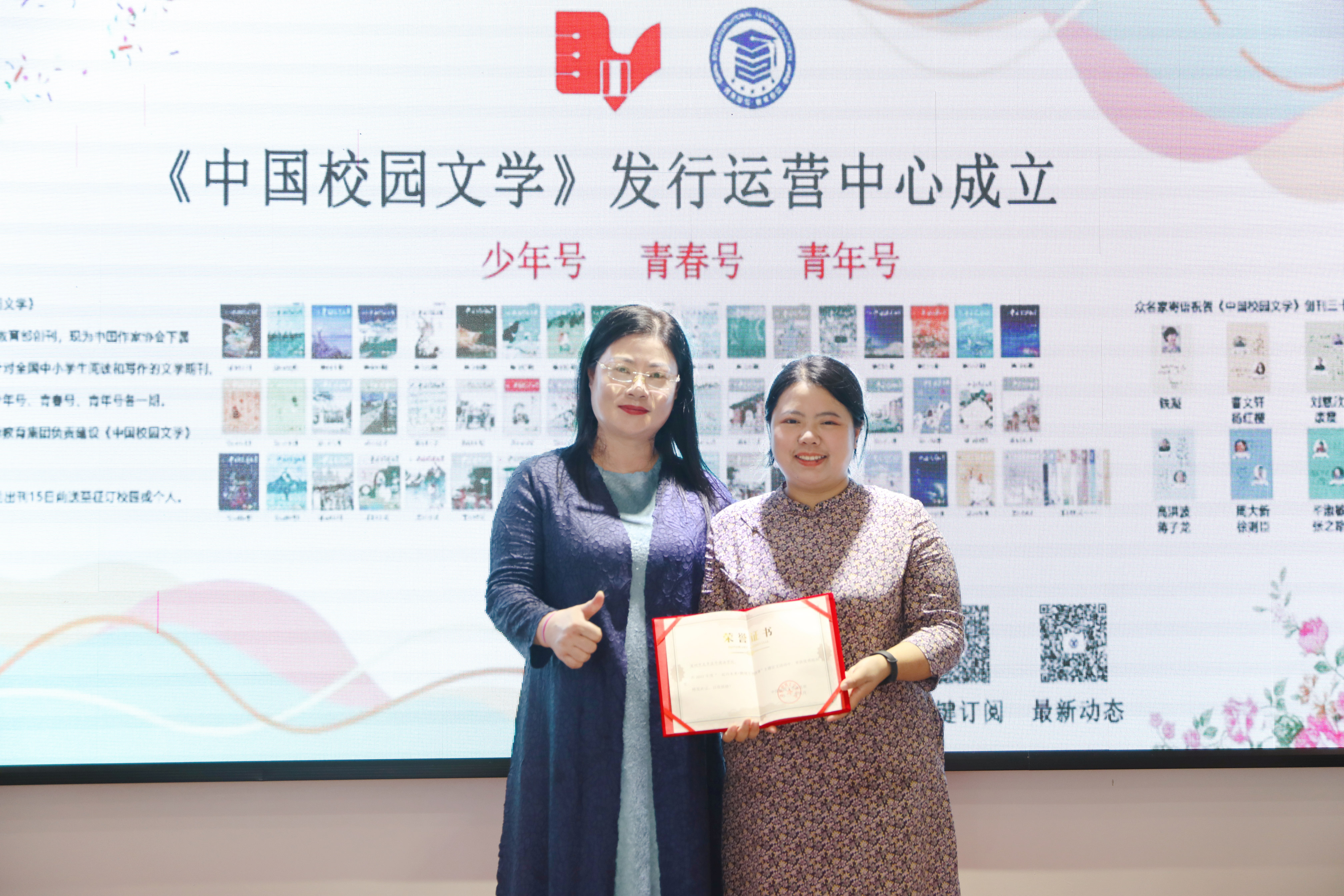 全國(guó)文學(xué)盛典聯(lián)合發(fā)起人、創(chuàng)始人肖硯寧為獲獎(jiǎng)教師代表頒獎(jiǎng)并合影