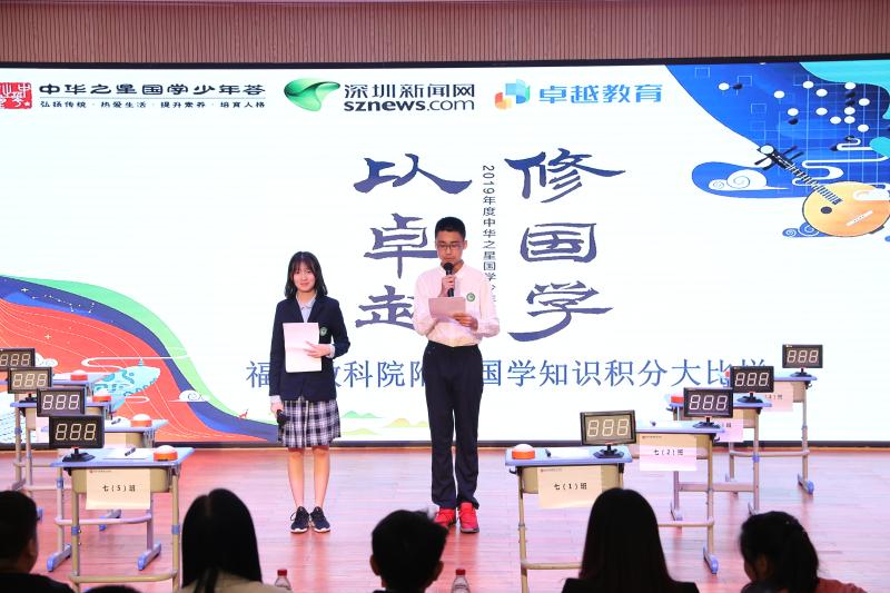 4月1日,福田區(qū)教育科學(xué)研究院附屬中學(xué)舉行國(guó)學(xué)知識(shí)積分大比拼活動(dòng),該活動(dòng)是“2019年度中華之星國(guó)學(xué)少年薈”的校園分會(huì)場(chǎng)活動(dòng)之一。
