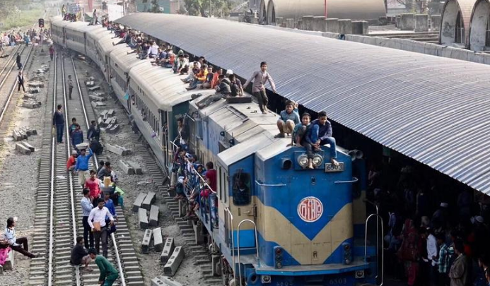 孟加拉的“瘋狂火車” 民眾為省錢蹲在兩節(jié)車廂的掛鉤處