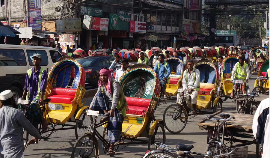 實(shí)拍世界三輪車之都達(dá)卡 浩浩蕩蕩車流構(gòu)成奇特街景